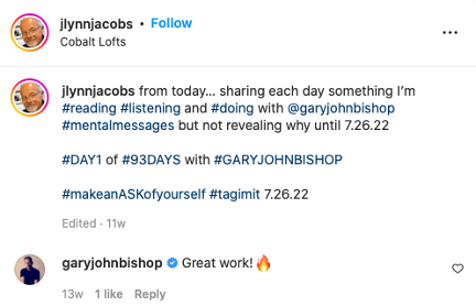 It’s not that what he's telling you is so new, but it's shared in a way that if you stay open to it, you’ll get something from it in a way that you’ve never heard before. That's also why I'd like to read and listen to what he shares over and over because it strengthens your awareness, your honesty with yourself, and resolve in all the areas of our life that matter to you. I can’t stress this enough that if you read, and listen, to someone you really respect, you’ll experience a much deeper connection to their work than if you only do one or the other. And reading and listening to the same content, especially when it’s in the authors voice is a real game changer. Gary’s books are not that long to read or listen to (listening takes a while, but not so much if you listen to him commuting, walking, at the gym, or in a quiet place instead of TV) so it won’t take you 93-days to read his four books. What I’ve found depending on where my head was at, what my mood I was in, and what was going on in my life, I could pick up the same book say three days, or three weeks later and I'll get something I've never gotten before. During this 93-day journey the overwhelming amount of DM’s I’ve got from people that liked what I was sharing has been amazing.Now I don't know how many people would be willing to take a 3, 33, 63, 93, or however many days immersion like that I did, but I'm excited that there are so many people that picked up on what I was sharing and learning that they're doing that for themselves too.